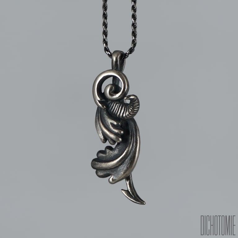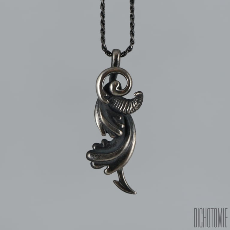 Each Vernalis Pendant is cast in sterling silver and is debossed with the Dichotomie monogram for authenticity. Hangs from a 16” sterling silver rope chain.
